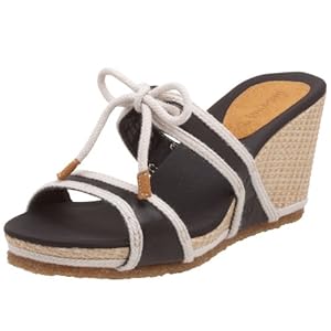Nautical style rules in the 80's Remix sandal from Timberland. This updated version of the espadrille features a summery, strappy upper with rope detailing and a woven covering over the feminine, wedged platform.
