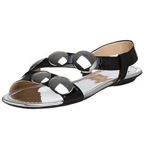 Bronx Women's Bowie Ornament SandalProduct Description: Get ready to shine in the Bowie sandal from Bronx. This fabulous flat has an asymmetrical patent upper with bold mirror buttons and a shiny metallic footbed. A perfect choice when you need a break from heels, but still want to add a trendy punch to your outfit.